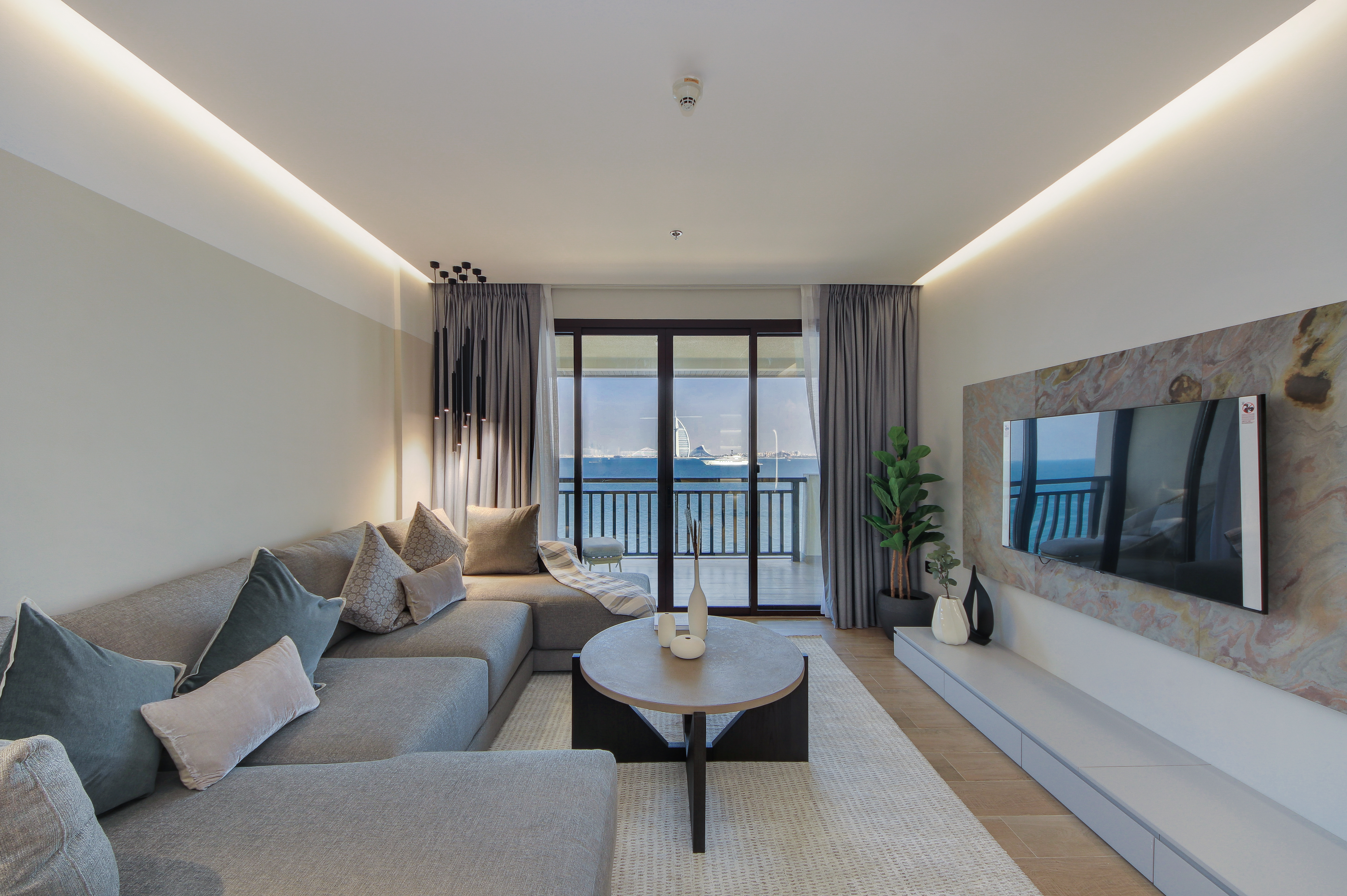 Apartments on the beachfront of Palm Jumeirah offer a charming and relaxing experience, with a large and comfortable balcony to soak up the sun during the winter months. Even during the summer, you can still enjoy the beautiful views from the air-conditioned living room with large windows. The apartment is well-equipped and spacious, with plenty of natural light. It is a short and enjoyable walk to the center of the area's nightlife, beaches, and other recreational hotspots.
